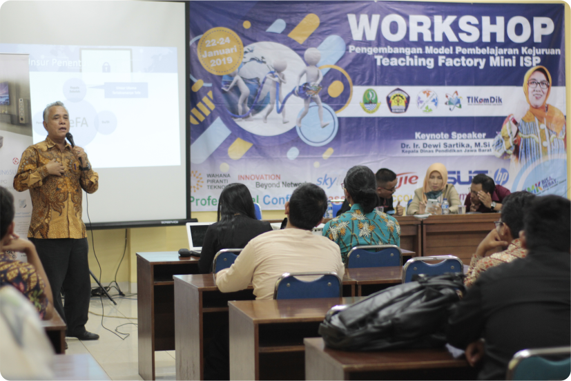 Bagian dari bakti pendidika Skyline Foundation melaksanakan workshop untuk guru guru kompetensi keahlian Teknik Komputer dan Jaringan Provinsi Jawa Barat yang diikuti oleh 50 peserta. Materi yang disampaikan merupakan produk hasil link and match SMK yang menjalin kerjasama dengan program pendidikan Skyline Foundation. Workshop ini bisa juga merupakan desiminasi menganai produk pembelajaran Teaching Factory yaitu berupa alat praktik pembelajaran yang kami sebut Miniatur Infrastruktur Internet Service Provider.